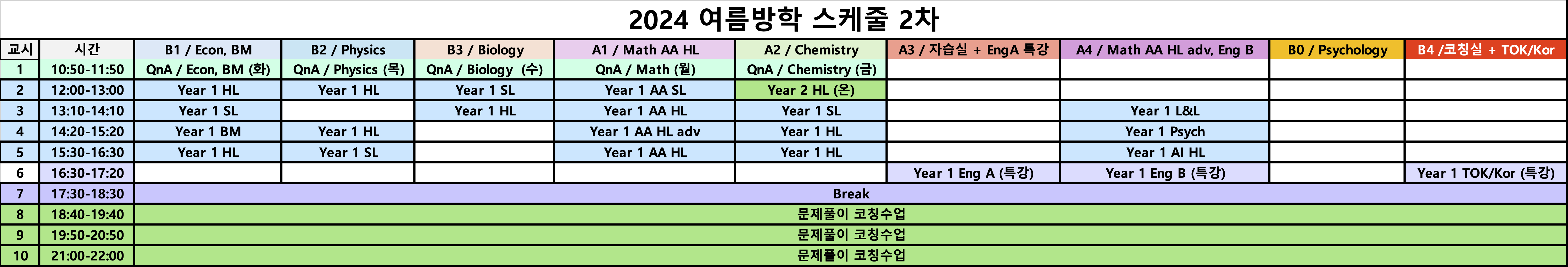 * 분반: 학년분반, Year 1도 HL/SL분반, 수학 AA/AI분반, AA Regular/Advanced분반